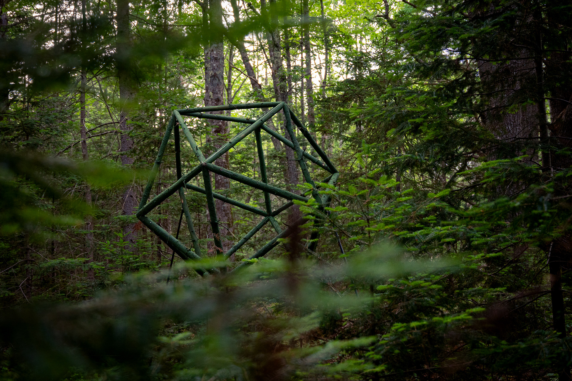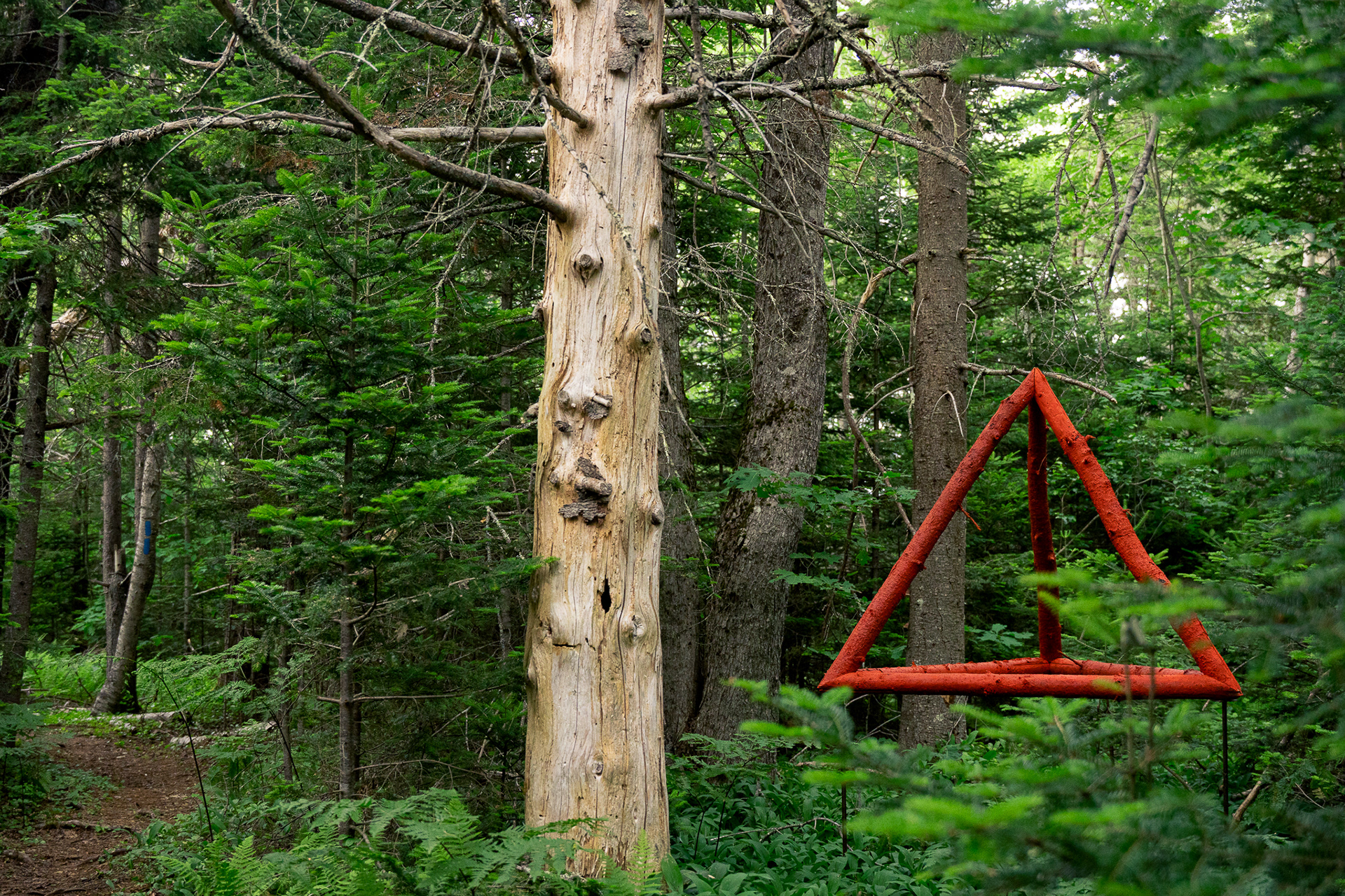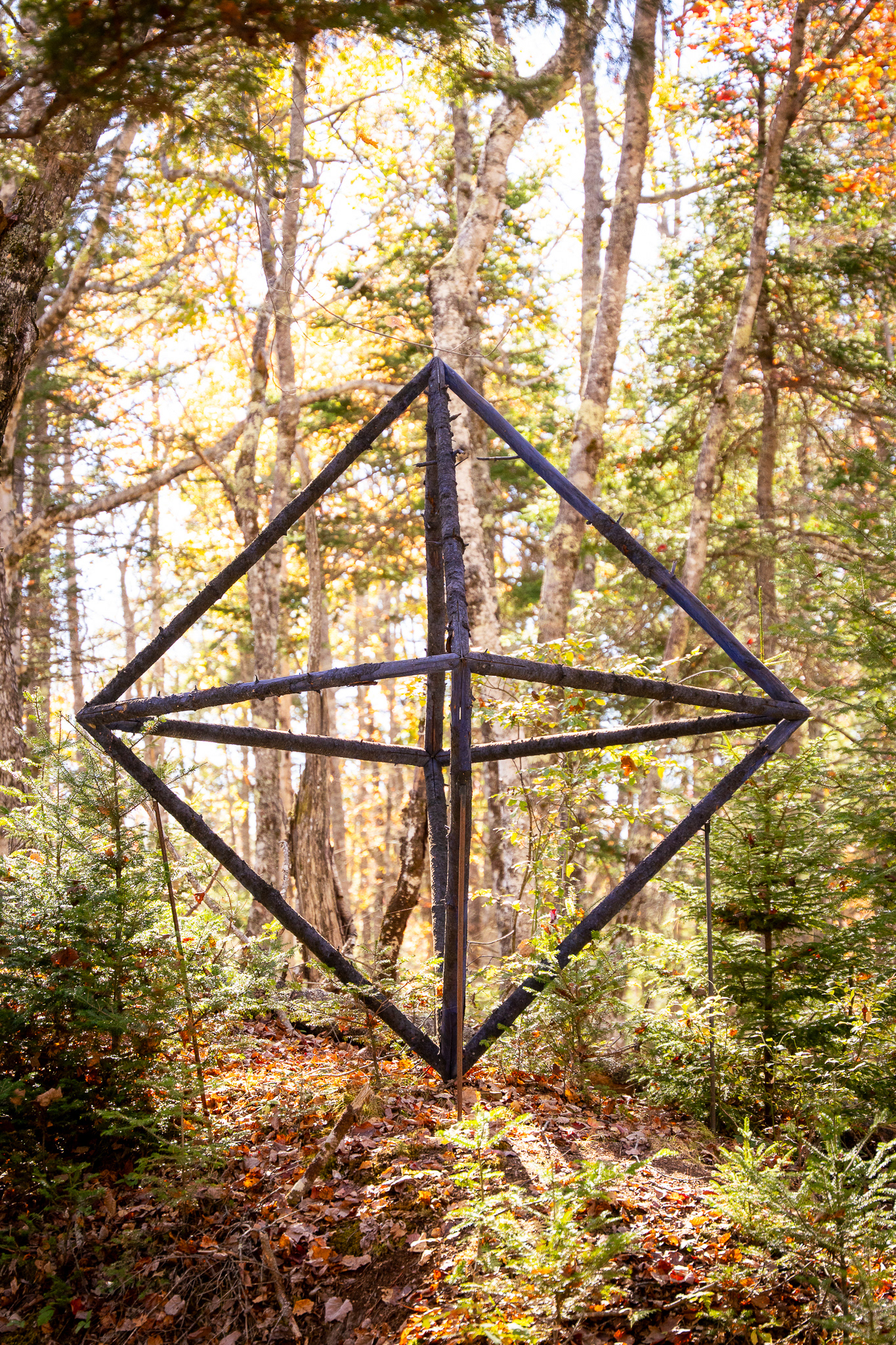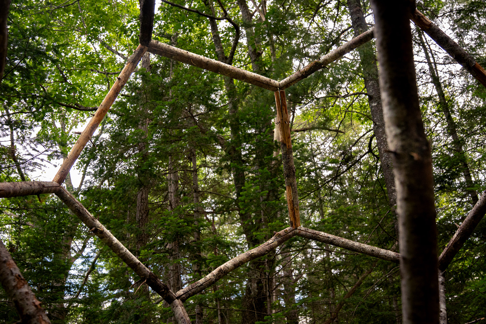 In collaboration with Georges River Land Trust, visiting artist Gina Siepel created these sculptures as "...a response to the dynamic, biodiverse, evolving ecology of this forest, which is in transition due to a changing climate and shifting land use." Read more on her website https://www.ginasiepel.com/works/forest-geometries