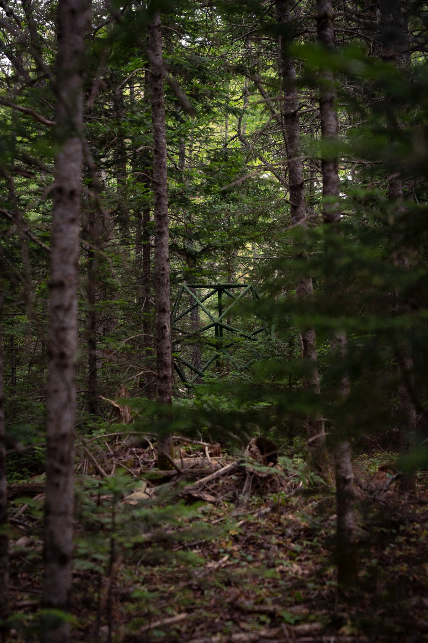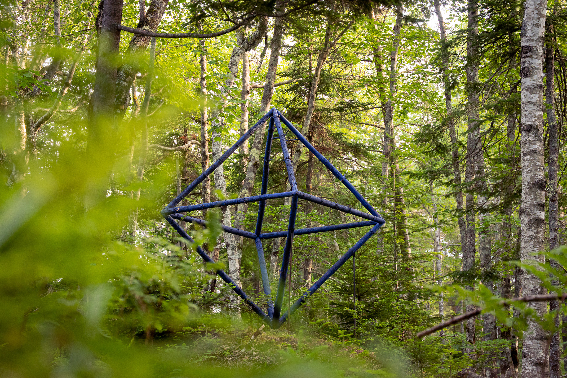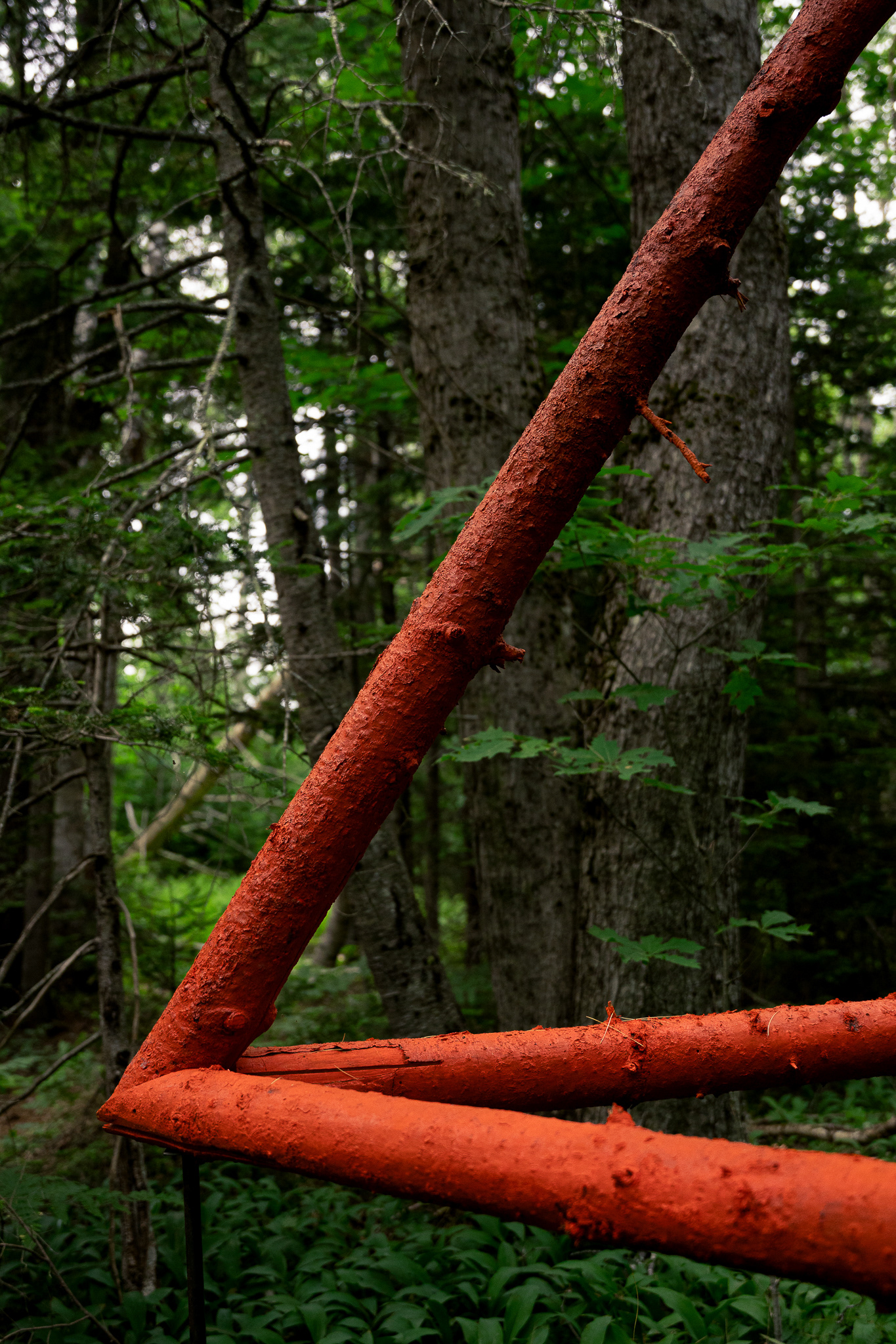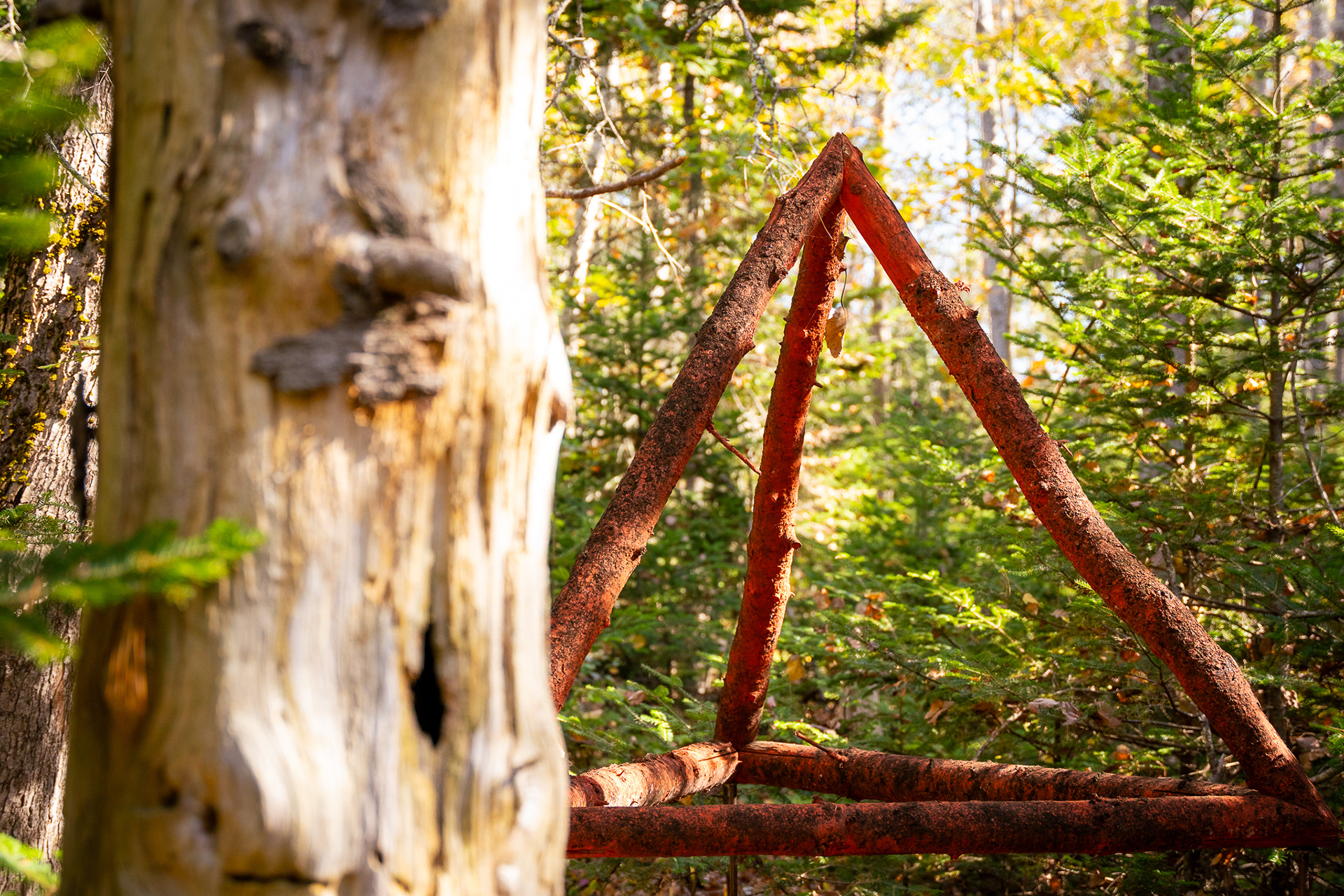 In collaboration with Georges River Land Trust, visiting artist Gina Siepel created these sculptures as "...a response to the dynamic, biodiverse, evolving ecology of this forest, which is in transition due to a changing climate and shifting land use." Read more on her website https://www.ginasiepel.com/works/forest-geometries