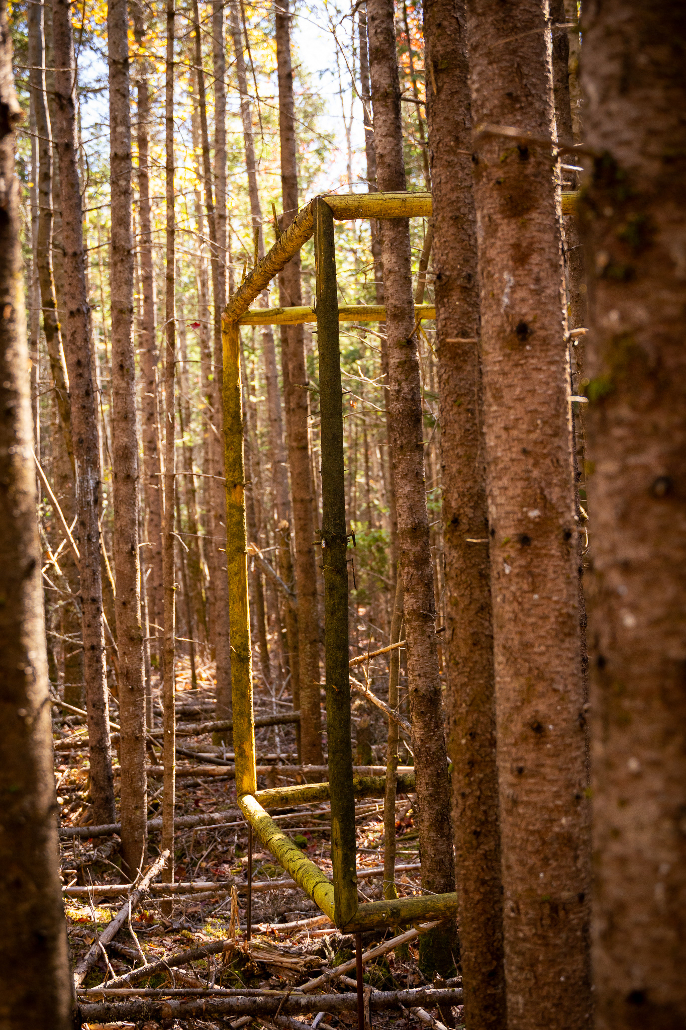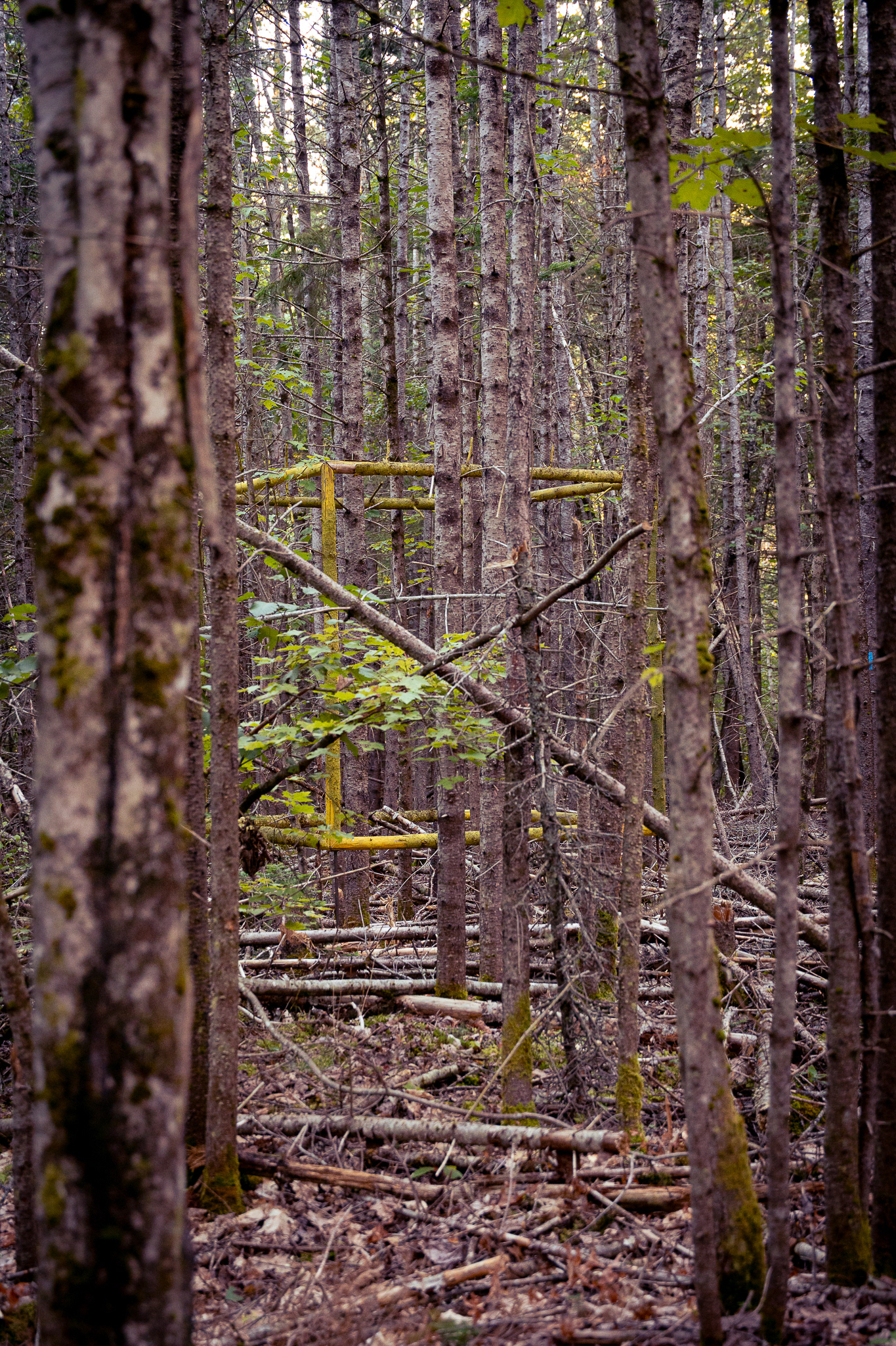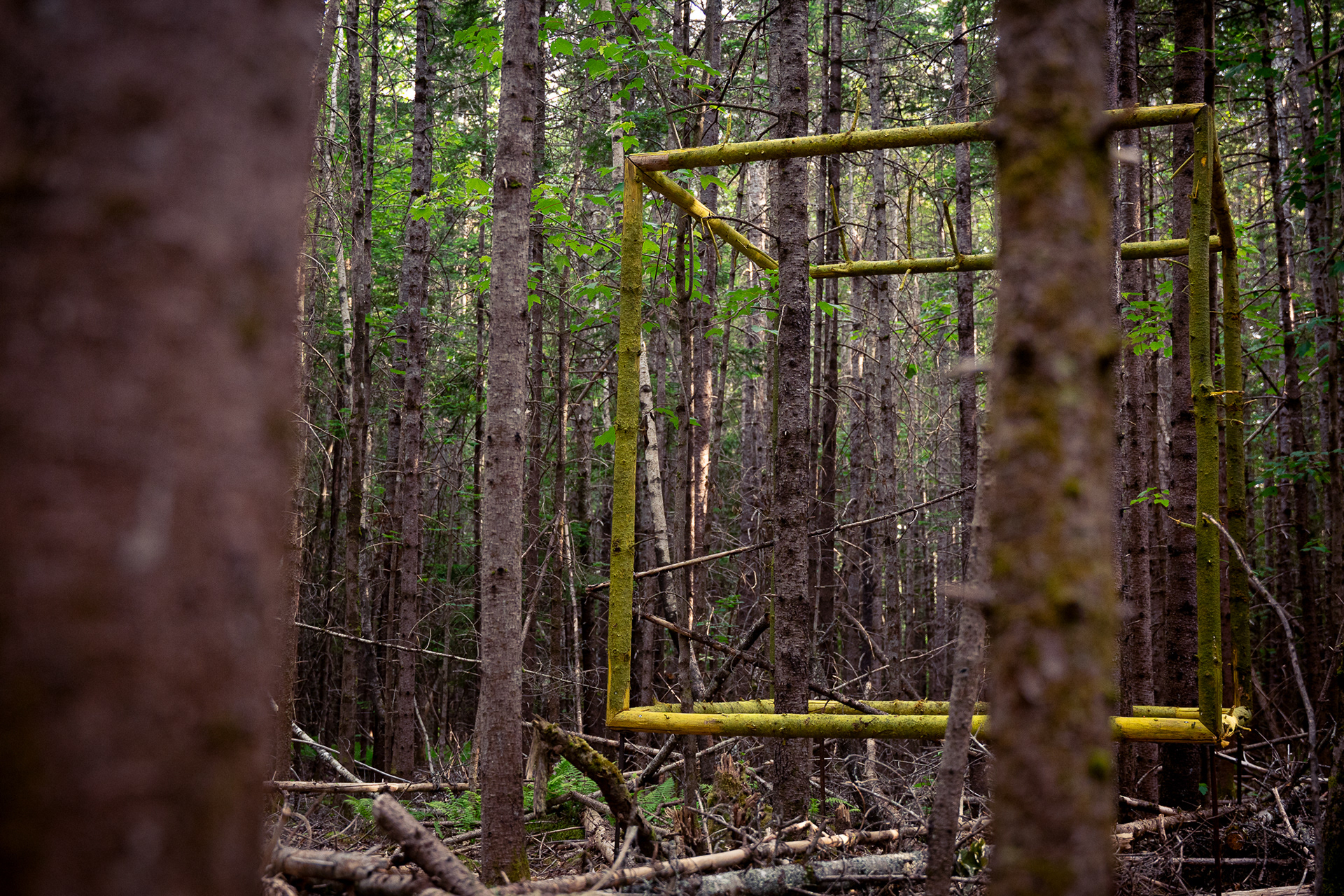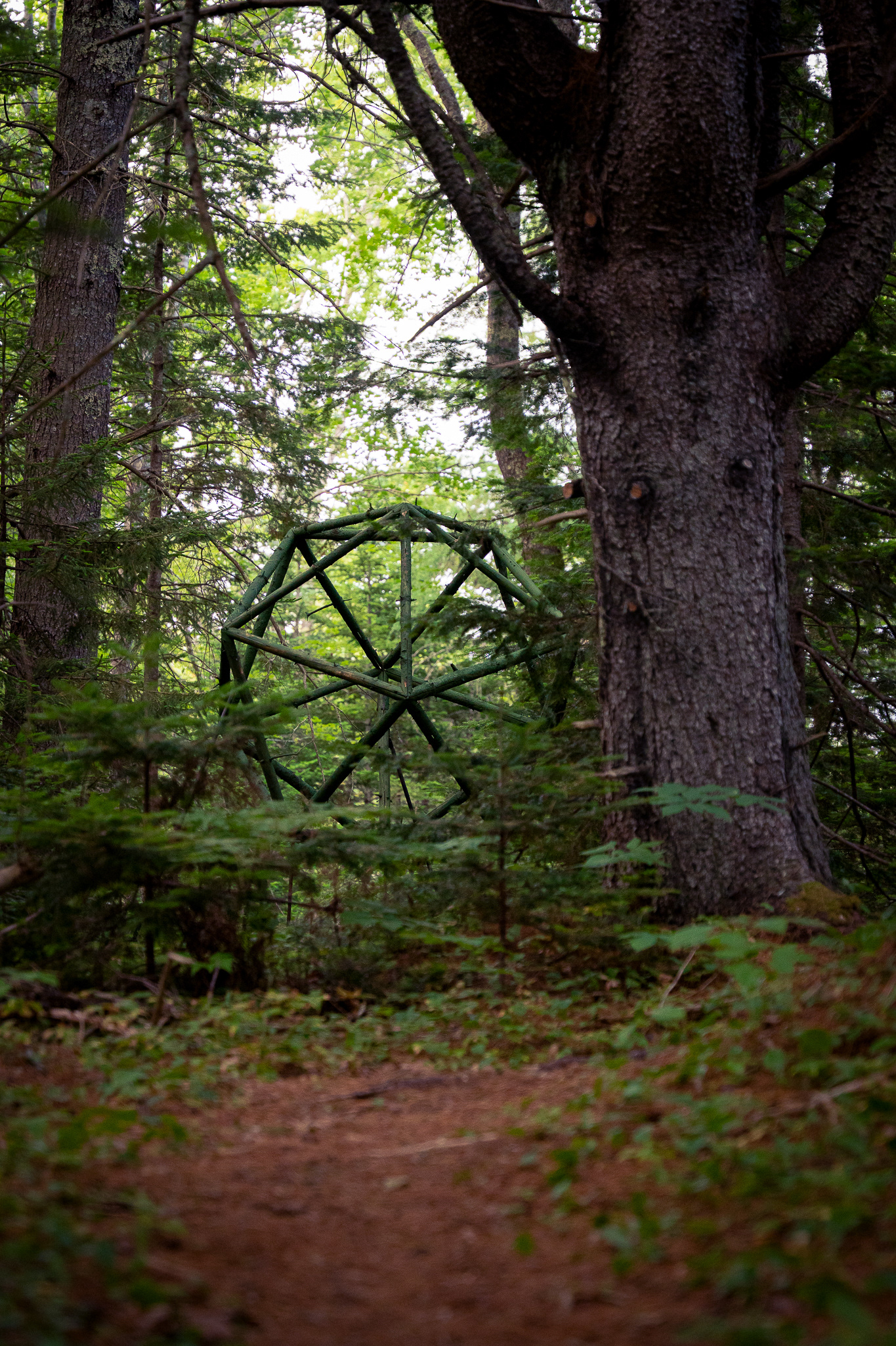 In collaboration with Georges River Land Trust, visiting artist Gina Siepel created these sculptures as "...a response to the dynamic, biodiverse, evolving ecology of this forest, which is in transition due to a changing climate and shifting land use." Read more on her website https://www.ginasiepel.com/works/forest-geometries